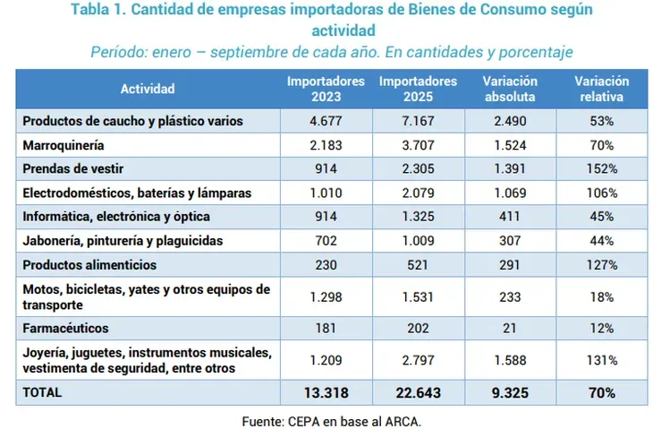 En términos generales, el CEPA identificó que 291 empresas de la industria alimenticia que no traían productos de otros países en 2023, en 2025 sí lo hicieron. En paralelo, algunas compañías que ya compraban al exterior ahora diversificaron considerablemente su canasta de importaciones, destacándose los casos de Ferrero, Carrefour y Bonafide.